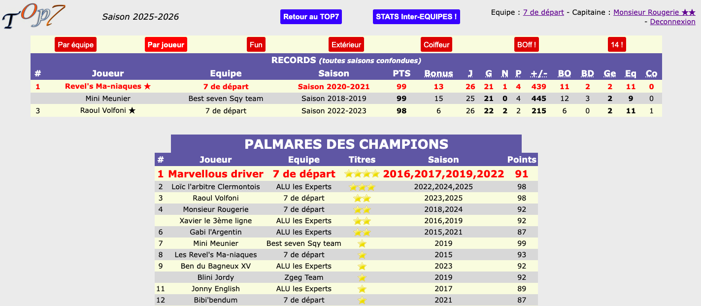 - Le jeu se compose de 7 joueurs obligatoirement. (autant que de rencontres dans une journée de championnat)