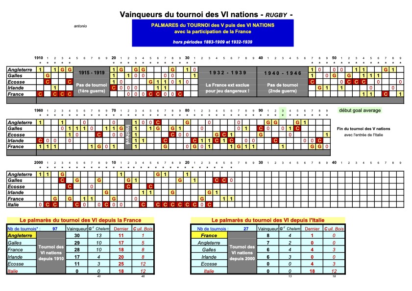 L’arrivée du goal average en 1993, de l’Italie en 2000 avec le tournoi à 6 nations.